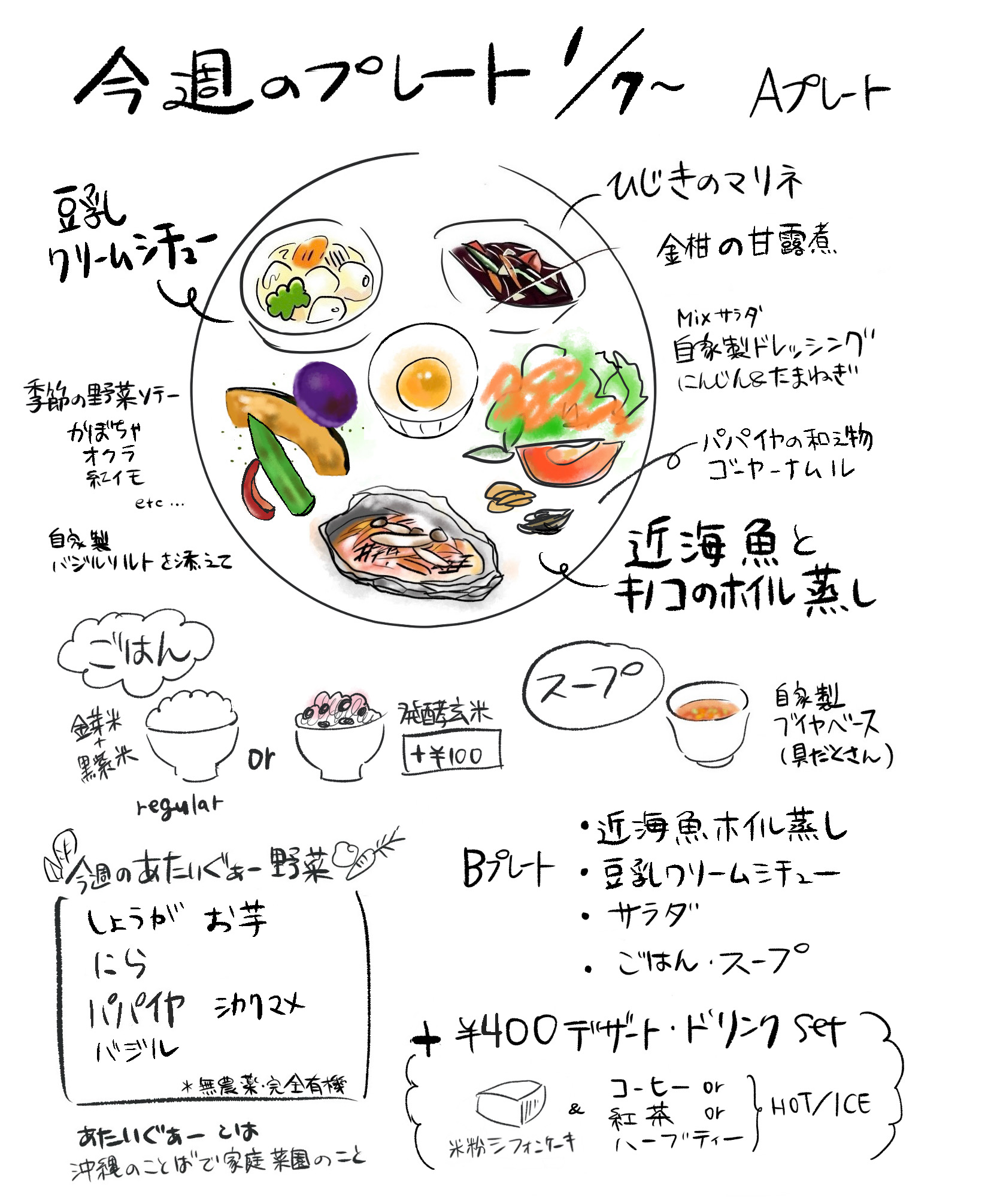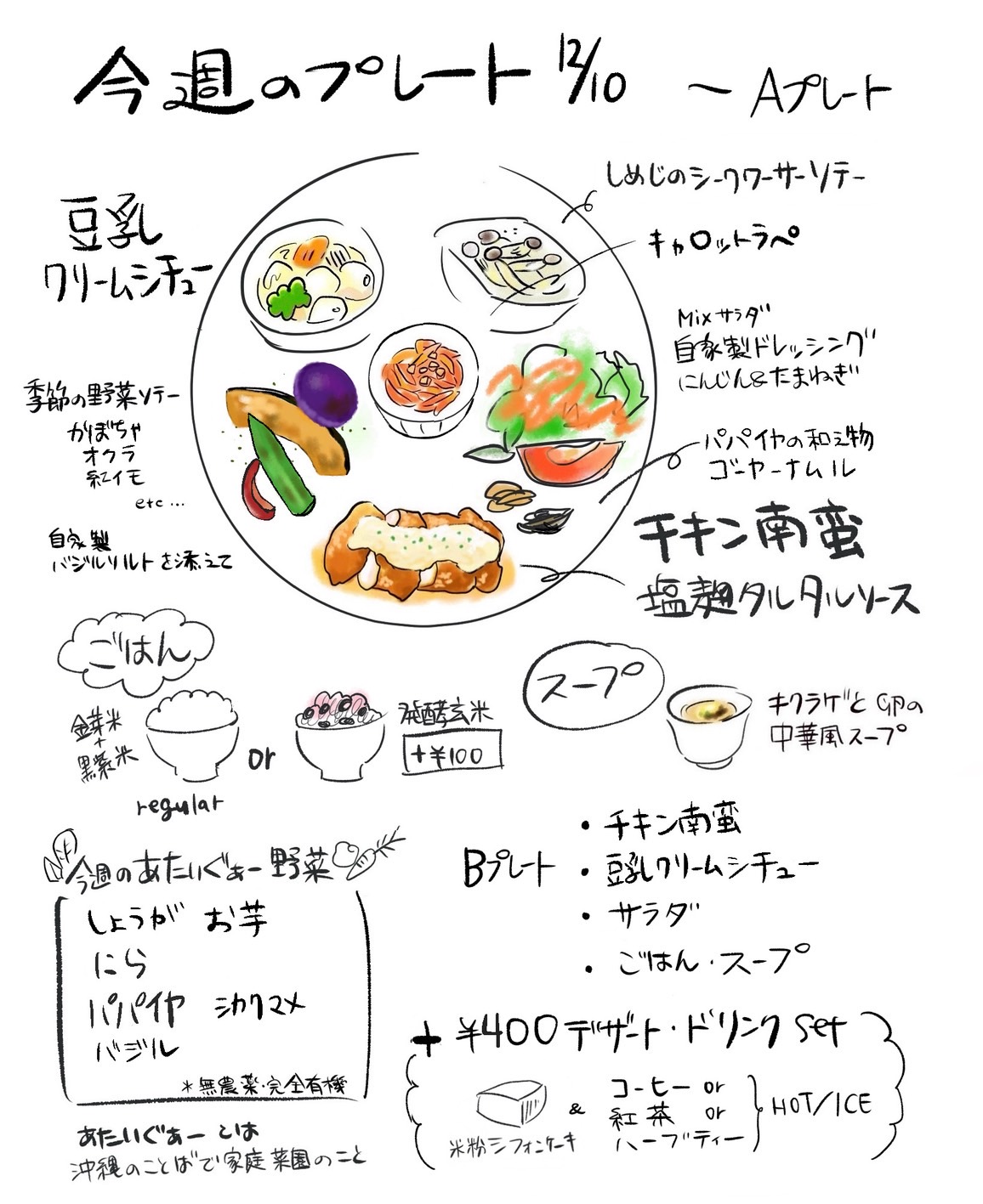 体に優しいランチ、手作りのケーキ