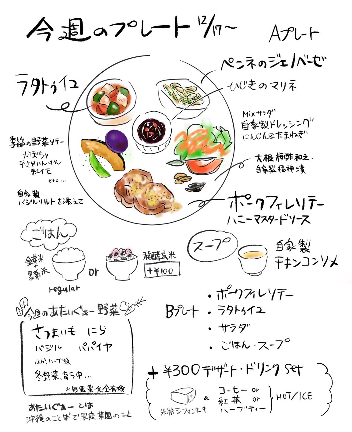 「週変わり おまかせプレート」がおすすめとなっております。手作りのスイーツやアップルパイも好評です。